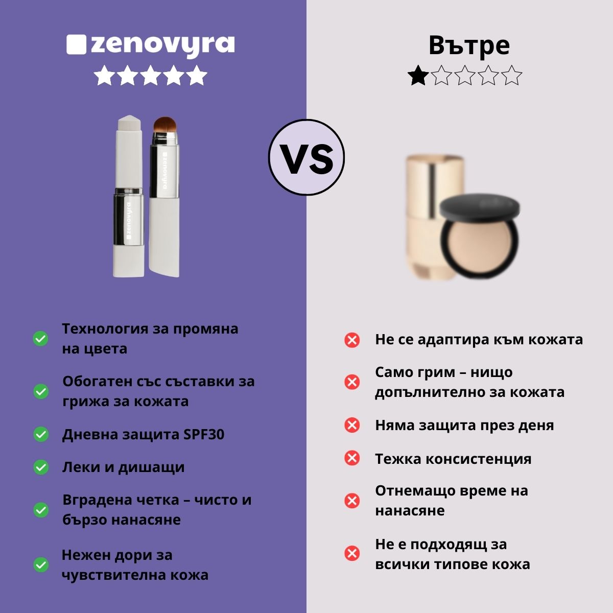 Този променящ цвета стик автоматично се адаптира към тена на кожата — дали е светла, дали е чувствителна, дали е проблемна. Толкова естествено, че ще забравиш, че носиш грим.